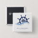 Marinblå och vit bröllopsdusch /möhippa-favoritknapp med skeppsratt och frasen "sista seglingen före slöjan". Anpassa den med dina evenemangsuppgifter.
