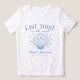 Fira med stil med denna anpassade möhippa t-shirt med ett vintage beach “Sista skålen på kusten” tema i blått. Perfekt för brudtärnor, strandmöhippa eller tjejhelg. Personifiera med namn eller datum för en rolig souvenir. Mjuk, bekväm och Insta-värdig!