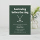 Få redot att frigöra sig vid den ultimata kandidaten helg med vår inbjudan "Sista gången före Ring". Den här moderna och eleganta designen i grönt och vitt anger tonen för en golftematisk extravaganza. Funktioner för resväg till helg. Missa inte på den här episka helg full med födslar, bogeys, och med killarna. Beställ nu för att säkra din plats på grönten för ett helg av oförglömliga minnen före den stora dagen!