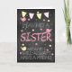 Sister Birthday Chalkboard med små fåglar Kort