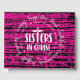 Christian-themed artwork featuring the phrase "Sisters in Christ" displayed on a dark pink background, designed for a variety of products.