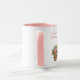 I eleganten har mugg en hullerv med rosa ros och blåa blommor mot en vit bakgrund, och ett underbart citat av en okänd person: Sisters är olika blommor från samma trädgård.