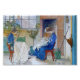 Flickor klädda i blå sitta på hårda bakåtsittande stolar sydda för hand. Den svenska konstnären Carl Larsson är vintage bra.
