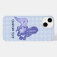 Sittande sjöjungfru med långt hår, ljusblå färg. Anpassad text.
