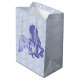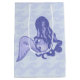 Sittande sjöjungfru med långt hår, ljusblå färg.