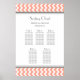Elegant och contemporary anpassade fem bord-sätesdiagram för bröllop i modern persikoisk orange rosa, grått och vit roligt och retro chevron zigzags rand mönster. Anpassa till gästerna namn för att skapa ett unikt sittschema för bröllop. Kontakta oss om du vill ha ett diagram över anpassningsbarna för ett annat antal gäster.