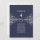 Välkomna gäster till contemporaryns vinterbröllop med elegantens blå sittplatsplan. Den har en elegant modern utformning, silver-rep-hjärtaccenter och guldad blommigt snöre, den är sofistikerad. Varje bordsnummer vägleder gästerna till sina platser med stil och skapar en minnesvärd upplevelse som perfekt kompletterar ert moderna romantiska firande.