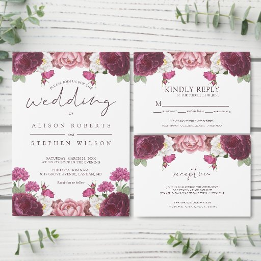 Fin Blommigt Burgundy Bröllop-design. Det är enkelt att anpassa utformningen, om du vill ändra typsnitt klickar du för att anpassa den ytterligare. Färg är perfekt för vår och sommar-bröllop. Du är välkommen att besöka min affär för vackrare produkter.