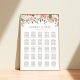 Bröllop-sätesschemat matchar vår insamling av Blommigtar från Midsommaren, med botaniskt grönt lush-vatten och persiko- och rosa blommor som ger information om gästsäten. Perfekt för större bröllop, denna 32x48-tumsskylt ger utrymme för upp till 25 bord.