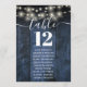 Sittdiagram för Bordsnumret Blue Wood String Ljus Inbjudningar