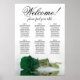 Det vackra bröllop-sätet har sex bord, vardera 10 gäster, sammanlagt 60 gäster. Diagrammet har en romantisk utformning som visar en enda djup, djup, nödlandad grönt färgad ro som vilar delikatativt på sidan och reflekterar i en sund bassäng i vatten. Diagramets titel, som återges i elegantens manuslista, inbjudan gäster med "Välkommen!" Hitta bord" medan du lämnar tillräckligt med utrymme vid grund för parets namn och bröllop-datum. Detta sittplatskort är ett underbart och praktiskt sätt att välkomna gästerna och hjälpa dem att hitta sina platser vid mottagningen, och utesluter en luft av charm och sofistikering.