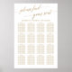 Det här guld-kalligrafisittningsschemat i elegant är poster perfekt för ett enkelt bröllop. Neutraltens utformning har ett minimalistiskt tecken som är dekorerat med romantisk och vismisk faux-folie-typografi av guld. Denna poster i bröllop innehåller tillräckligt med utrymme för upp till 16 bord (160 gäster). Förutom varje gästs placering, anpassa detta tecken med namn på bruden och brudgummen och bröllop-datumet. Det här sittplatsschemat kan användas för en bröllopsmottagning eller speciella evenemang. Obs! Den här designen har inte äkta guld-folie. Det är en grafik av hög kvalitet som framställs som guld-folie.