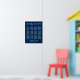 Den här enkla, mångsidiga designen har en mörk marin blå bakgrund med vit text. Enkelt, elegant typsnitt kan ändras om du vill. Alla lagrar lades till separat och lämnades olåsta till ge du mycket designkontroll. Den här installationen har 12 bord i tre rader av 4. Använda mall fält om du vill lägga till egen information.