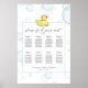Välkomna dina duschgäster med det här sittkartan med ett snyggt gummi anka och bubblor. Ge plats åt fler (eller färre) gäster genom att klicka på knappen "anpassa" och minska eller öka teckensnittet storlekt. Extra bord kan också strykas. Förutom varje gästs placering.