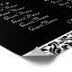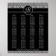 Ett bröllopsmottagningsdiagram är ett elegant för att styra gästerna till bord i stället för att använda platskort. Du kan också behålla din sittplatsplan som en för bröllop och de människor som firade med dig. Det här engrammade bröllop-sätesschemat har ett vackert dammmönster i svart och vit blommigt med en inledande svartvit cirkel. Det är designat att passa in i ett ram av standardstorlekarna: 11 x 14, 15 x 19 och 23 x 29. Du kan förse ditt eget ram eller beställa bröllop sittningsdiagram med ram. Vi erbjuder också en fyrkantig version av det här bröllop-platstilldelningsschemat. Du kan lägga till gäst namn, anpassa monogrammet brev och justera layouten på produktordersidan. Se till att kontrollera de andra samordningsprodukterna i vår Blommigt Damask II Bröllop Collection - Black.