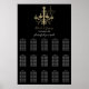 Sittdiagram för Svarta Guld Chandelier Bröllop Poster