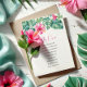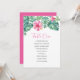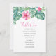 Designat att koordinera med Do tell A Belles tropiska vattenfärgssvit, har detta nya botaniska sätesdiagram en sprej av lush monstera handflatan löv och i skuggor av blått, turkos och grönt med vibrerande rosa hibiscus blommor över din lista över namn. Baksidan har en komplementär rosa färg. Perfekt för trädgårdsodlingmottagningar, repetitionsmiddagar och kustnära möhippor. Om du vill se fler idéer från tropiska Bho bröllop går du till www.zazzle.com/dotellabelle Kontakta mig om du behöver fler artiklar.