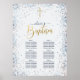 Baptismens sittdiagram Poster elegant blå och guld. Utformning med glitter konetti-bakgrund, guld kor och typografiskript "Baptism". Klicka på anpassa ytterligare för att redigera/ändra mallen.