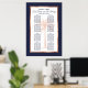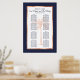 Lägg till din egen speciella beröring till den här eleganten med ett modernt skript och marinblått text, inklusive en konstnärlig silhuett för ro i handflatan med träd med en metallisk guld av koppar från ro. Den här sittplatskartan har namnen från bruden och brudgummen tillsammans med orden "Ät, Drick, Var vänlig och hitta ditt säte". Mallar finns för upp till åtta bord med upp till 10 eller 11 namn per bord.