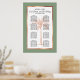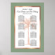 Lägg till din egen speciella beröring till den här eleganten med modernt manus och svart text, inklusive en konstnärlig silhuett för ro i handflatan med träd med en metallisk ro guld i. Den här sittplatskartan har namnen från bruden och brudgummen tillsammans med orden "Ät, Drick, Var vänlig och hitta ditt säte". Mallar finns för upp till åtta bord med upp till 8 eller 9 namn per bord.