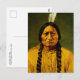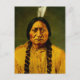 Detta är en av de mest slående och realistiska historiska porträtten av den berömda Hunkpapa Lakota Sioux indianhövdingen, shamanen, helige mannen och krigaren Sitting Bull (cirka 1831-1890). Bilden kommer från ett koloriserat foto från cirka 1885 taget av den framstående western Americana-fotografen David Francis Barry, (1854-1934). Barrys arbete är känt för sin klarhet, värdighet och dokumentära betydelse, vilket gör detta porträtt till en av de mest igenkända och ikoniska bilderna av Sitting Bull och av den nordamerikanska ursprungskulturen. Detta moderna vykort innehåller en reproduktion av hög kvalitet av det historiska porträttet.