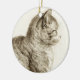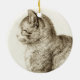 Sitting cat vintage sepia pencil drawing julgransprydnad keramik