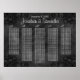 © Sunny Mars Design - Blommigt Hibiscus: Black on Chalkboard A to Z Bröllop Seating Charts - Snyggt, modern, elegant, trendig, chic anpassningsbar Gothic bröllop bord Seating Chart template med vacker Goth Black swirly blommigt tropical hibiscus design mot en svart bakgrund på kritan. Sits 150 människor eller par.
