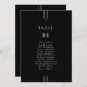 Det här slimmade svarta hängande bröllop-platskort från Everly Collection har skarp vit text, geometrisk dekoraccents och redaktionellt avstånd. Det enkla tunna treradiga motivet i eleganten i ram för ett förfinat, modernt, minimalistiskt kvällsutseende i redot. Kortet skrivs ut på framsidan och baksidan (dubblan).
