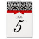 Sittnummer för Damask Red Bow Bord Hälsningskort