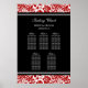 Elegant och contemporary anpassade fem bord-sätesdiagram för bröllop i modern röd, svart och vit klassisk blommigt, vintage mönster. Anpassa till gästerna namn för att skapa ett unikt sittschema för bröllop. Kontakta oss om du vill ha ett diagram över anpassningsbarna för ett annat antal gäster.