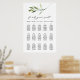 Det här sittschemat har en enkel vattenfärgsgrön löv med ett handskrivet skript och ett lättläst bord-format. Den enkla layouten gör det enkelt att redigera och perfekt för alla tillfälle. Det här sätesschemat är perfekt för din grey- eller trädgårdstemetshändelse.