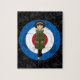 Sixtiesmodflicka i anorak med sparkcykelpussel pussel