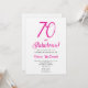 Minimal Seventy and Fabulous pink modern 70th birthday invitation that you can personalize and send out for your seventieth birthday party celebration. The words "70 and Fabulous" are set using trending font typography. The black text colors can be changed using the edit menu.