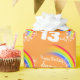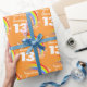 Födelsedag som slår in papper i en färgrik regnbåge med stjärnor och orange himmeldesign. Personifiera detta flickafödelsedagpapper med din egna namn och ålder 10 till 19. Läser för närvarande grattis på födelsedagensommar 13 i dag. Perfekt för inpackning av en 13th födelsedaggåva för speciella tonåringar. Unikt designat vid Sarah Trett.
