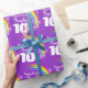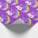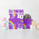 Födelsedag som slår in papper i en färgrik regnbåge med stjärnor och purpurfärgad himmeldesign. Personifiera detta flickafödelsedagpapper med din egna namn och ålder 10 till 19. Läser för närvarande grattis på födelsedagen Haylee 10 i dag. Perfekt för inpackning av en speciell tionde födelsedaggåva. Unikt designat vid Sarah Trett.
