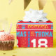 Moderna text och sportar görar randig gåvan för pojkar för födelsedagen för designpersonligåldern som slår in papper och att presentera grafisk typografi och ditt egna sex brevnamn i ljusa rött, vit, gult och blått. Personifiera med ditt egna namn (behar noterar inte all namn ska passform tack vare naturen av stilsorten), och åldern, läser för närvarande Thomas 18, andra kända längder är tillgänglig, om du behöver hjälp behar kontaktar mig, lycklig för att posta en för ditt namn. En underbar långt som ger ett personlighandlag till födelsedaggåvor. Unikt designat vid Sarah Trett.