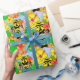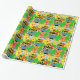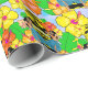 Detta färgrika slående in papper är fullt av den retro tropiska hötorgskonsten. Hula dansare, tiki maskerar, och hibiskusblommor gör denna hawaianska skjorta som inspireras för att planlägga stativ ut. Perfekt för ett themed party för luau eller ett tropiskt destinationsbröllop på den stora ön.