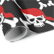 Sjalen, som uppskattade gåvan i buccaneerstil med denna ', gör upp trasaskallen och ben piratkopierar temat som slår in papper. Det skelett- huvudet ha på sig en röd bandanna, redo för att festa hurtigt med din scallywagvän på Talk Like a Pirate våldsamt slag, Halloween eller kanske en födelsedag för den gammala seadogen.