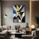 Abstrakt målning som blandar livfulla geometriska former och djärva färger, skapar visuell harmoni som återspeglar komplexiteten och skönheten i mänskliga känslor.