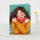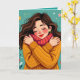 Ett sött kort för svartkonst i stil till behålla i kontakt med en vän eller familjemedlem för att påminna dem om att självvård är viktigt! En ljuv illustration av en kvinna som kramar sig i en mysigt svettare i söt, vismisk färg som orange, teal och rosa.
