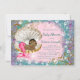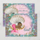 Sjöjungfru-baby shower-inbjudningar med söt etnisk afroamerikansk sjöjungfru-bebis i ett vackert musselskal på en vacker lila, rosa och turkos undervattensbakgrund. Du kan enkelt anpassa dessa vackra sjöjungfru-baby shower-inbjudningar för ditt evenemang genom att helt enkelt lägga till dina evenemangsuppgifter i den teckensnittsstil och formulering du väljer. Detta är en tryckt design utan riktig glitter, juveler etc.