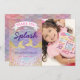 Under havet födelsedag tack-kort med ett foto av ditt barn, en färgrik pastellfärgad sjöjungfru scallop mönster bakgrund, glittrande guld och rosa glitter, sjögräs, två glittrande guld sjöjungfru svansar, och en söt barnkalas tack mall som är lätt att anpassa.