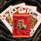 Förhöj dina Lunar New Year-underhållnings- och måltidsupplevelser 2027 med dessa festliga spelkort, som visar eldens get dansa på en lyxig falsk röd silkesbakgrund kantad av falskt guldfolie, plus den kinesiska bokstaven för get/får/ram som återges i falskt guldfolie, stående i stället för noll i 2027.