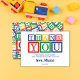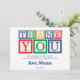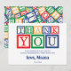 Oj, oj! Kommer du ihåg de klassiska trä-ABC-klossarna du brukade leka med? Den här designen föddes under en nostalgisk resa tillbaka i minnet, där jag mindes glädjen av att bygga torn och lära sig alfabetet, allt i de där starka, primära färgerna! Vi fångade den söta, vintageaktiga leksakslådans charm för att stava ut ett stort, lekfullt "TACK". Det är perfekt för att skicka ett varmt, personligt meddelande efter en födelsedagsfest, en baby shower eller någon barnvänlig firande. Anpassa bara det lilla meddelandet och signaturen för att göra det till ditt eget. Det är inte bara ett tack; det är en liten, färgglad bit barndomsnöje!