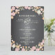Underbara blommor i mjuk rosa, aprikos och rosaton med bär och blommor i elfenben mot en trendig svart skrivtavla-bakgrund inramar din brölloppshistoria med charmig stil. Placera på borden eller rama in och visa bredvid er gästbok, detta kort är perfekt för ett vår- eller sommarmässigt bröllop eller när en trädgårds- eller utomhus tema är en del av er speciella dag. Whimsical blandning av typografi tillför kul och flärd. Koordinerande produkter i denna svit inkluderar inbjudningar, svars kort, mottagningskort, porto, platskort, bordnummerkort, adressetiketter och presentkort och klistermärken - allt du behöver för en charmig och komplett bröllopsensemble.