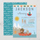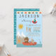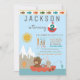 Fiskebursdagsinbjudningar med söt skogsbjörn och kanin som fiskar i en båt på en bergssjöbakgrund på framsidan och vattenmotiv på baksidan. Dessa fiskebursdagsinbjudningar för valfritt antal kan lätt anpassas för din fest genom att helt enkelt lägga till dina uppgifter. Du kan också ändra bakgrundsfärgen på dessa förtjusande fiskebursdagsinbjudningar.