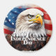 På USA:s Independence day stiger örn - en symbol för frihet och styrka - framför det viftande flagga i Förenta Stater. Den piercing blicken och den djärva, vita och blå bakgrunden representerar mod, beslutsamhet och de historiska värden som firades den 4 juli. Denna bild förkroppsligar pridet av en nation som står för dess oberoende.