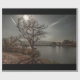 Ett träd vid kant i sjö, som delvis blockerar sol. Bergarna kan ses förbi kusten. HDR-bearbetning ger ytterligare information och djup. Det ser underbart ut på glansig papper. Anpassa om du vill göra ändringar.