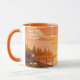 Lycklig Ställe Mugg. Snygg solnedgång på en serene sjö scen.