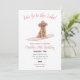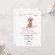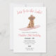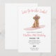 Den här vackra inbjudan har en vattenfärg porträtt i en guldfärgad hämtare hund sitta på en padelbräda med en sol hatt och rosa solglasögon.